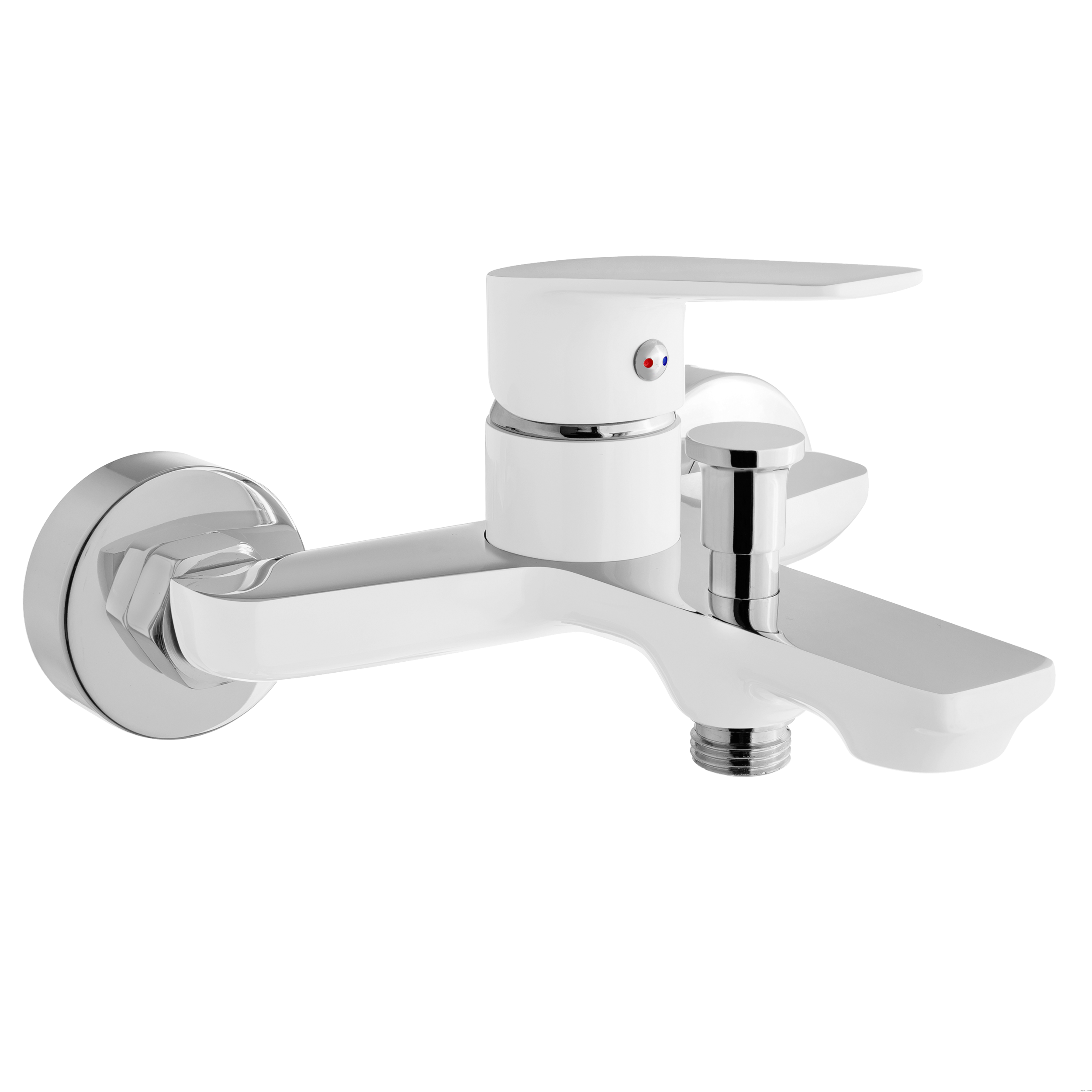 Bateria wannowa Dokos w kolorze biały chrom to doskonałe rozwiązanie do małej łazienki. Jej subtelna forma doda blasku każdej aranżacji.