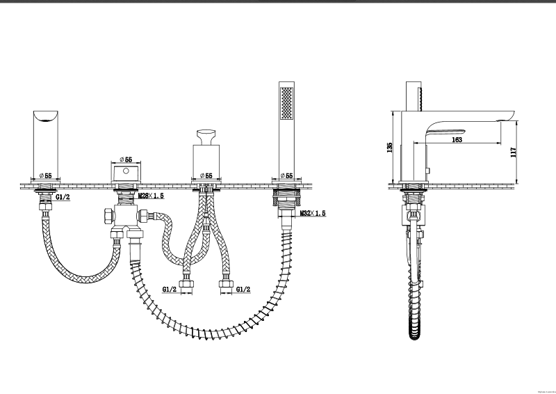 - Bateria wannowa 4-otworowa – idealna do wanien z możliwością montażu baterii na krawędzi.