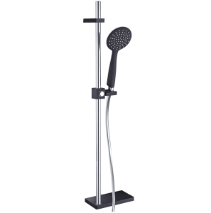 Zestaw z półką na akcesoria kąpielowe i idealnym do utrzymania w czystości wężem natryskowym PVC.