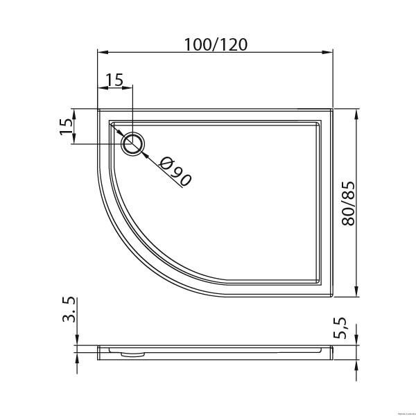 - umiejscowienie odpływu: w prawym narożniku