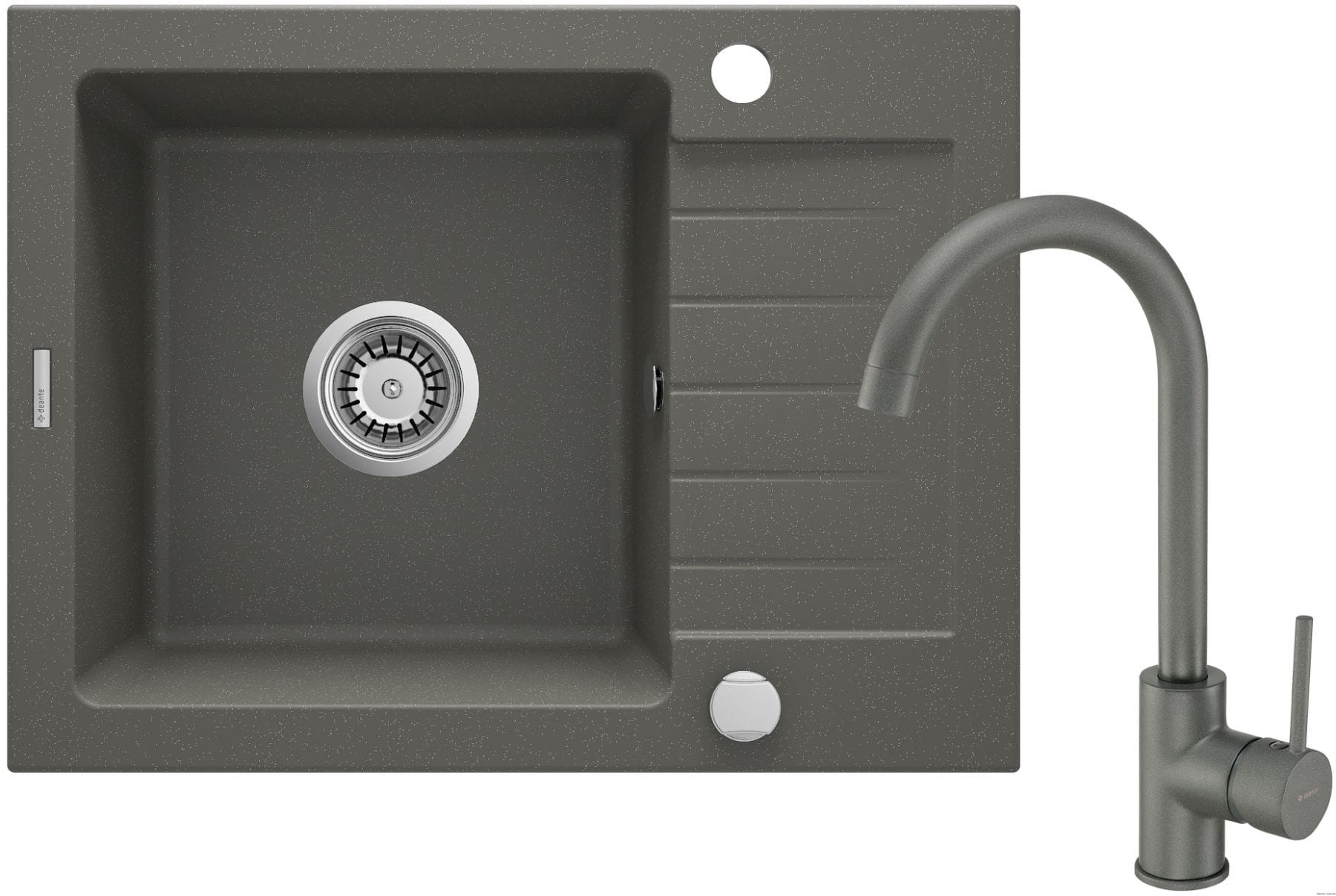 Deante Komplet zlewozmywak granitowy 1-komorowy z ociekaczem bateria zlewozmywakowa stojąca Antracyt Zorba ZQZAT11A