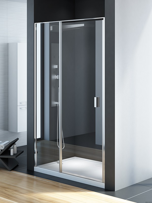Funkcjonalne drzwi prysznicowe Perfecta w rozmiarze 90x200 z szybą ze szkła czystego wyprodukowane przez firmę New Trendy. Są to pojedyncze drzwi, które dzięki innowacyjnym zawiasom otwierane są obustronnie. Drzwi świetnie dopełnią wnętrze łazienki.