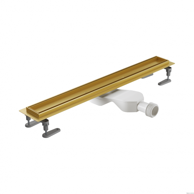 Odpływ liniowy Stilio Gold łączy w sobie minimalizm i praktyczność użytkową. Wykonany został z wysokiej jakości stali nierdzewnej, pokrytej powłoką PVD w kolorze złotym. Odpływ posiada wygodną regulację nóżek w pionie i w poziomie w zakresie do 30mm. Szeroki wybór dostępnych rozmiarów odpływów i wersji rusztu daje możliwość dostosowania do wielkości kabiny oraz wymiarów płytek, co znacznie ułatwia planowanie układu już na etapie projektowania. Produkt polecany jest do instalacji wraz z kabinami Excellent typu walk-in: Fabrika lub Vidoq.