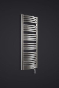 Grzejnik elektryczny. Model o ciekawej plastycznej linii i opływowym kształcie. Wyposażony w ozdobną listwę maskującą, w którą wkomponowana jest grzałka elektryczna.