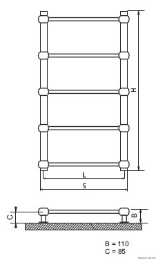Grzejniki mają cztery króćce przyłączeniowe o średnicy ½”. Każdy grzejnik wyposażony jest w korek, odpowietrznik oraz komplet mocowań. Usytuowanie grzejnika w pomieszczeniu powinno być zgodne z projektem instalacji c.o. Zaleca się mocować grzejnik możliwie nisko z zapewnieniem jego funkcjonalności jako suszarki ale nie mniej niż 100 mm od podłogi.