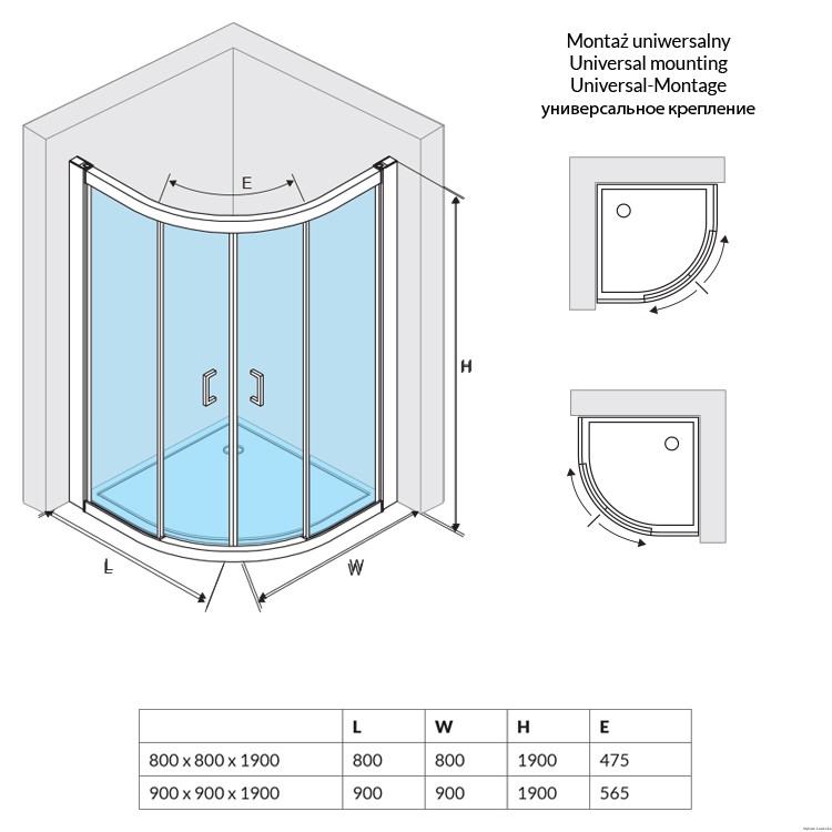 Seria 201 Kabina Półokrągła 90X90X190 KAAC.1801.900/N