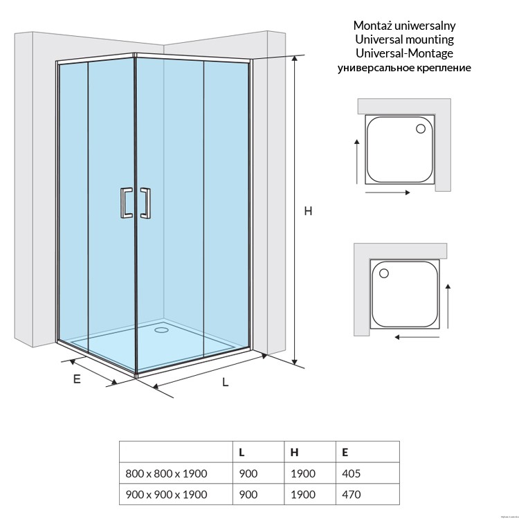 Kabina prysznicowa kwadratowa 90x90 Seria 201 KAAC.1802.900/N prod. EXCELLENT