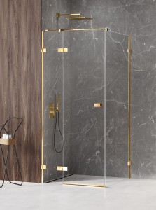 Model Avexa Gold Brushed Shine posiada eleganckie, złote detale o wykończeniu w połysku. Kabina wyposażona jest w bezpieczne, hartowane szyby o grubości 6mm, z powłoką ochronną Active Shield. W dolnej części drzwi znajduje się rynienka, odprowadzająca wodę z szyby do wewnątrz strefy prysznicowej. Kolekcja objęta 7-letnim okresem gwarancji. Kabina prysznicowa może być montowana zarówno z brodzikiem, jak i bez brodzika. Istnieje możliwość zamówienia produktu także w opcji na wymiar.
