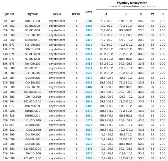 Zanim dokonasz zakupu upewnij się, że wymiary wybranej kabiny prysznicowej odpowiadają Twoim oczekiwaniom. Zazwyczaj podana szerokość to odległość do najbardziej wystającego jej elementu, którym w większości przypadków nie jest oś szyby! Często producenci podając wymiary kabiny kierują się rozmiarami brodzika prysznicowego, z którym może być ona skompletowana. Wówczas rozbieżności między rzeczywistymi wymiarami, a podanymi w nazwie produktu mogą wynosić nawet do 1.0 cm.