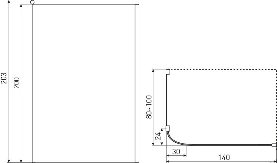 Dołączany do zestawu uchwyt montażowy w wykończeniu chrom ma regulowaną długość, co umożliwia regulację szerokości kabiny w zakresie 80~100 cm.