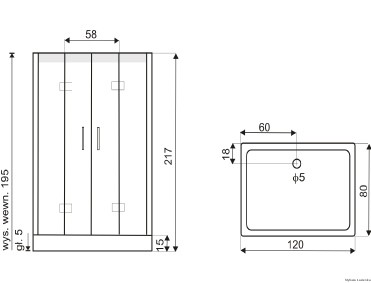 - Szerokość wejścia do kabiny: 58 cm