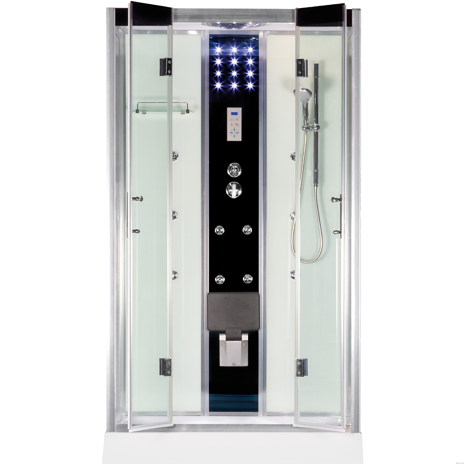 Każda z oferowanych kabin prysznicowych firmy Novoterm oferuje delikatny masaż pleców. Należy pamiętać, że ciśnienie wody wypływającej z dysz natryskowych, będzie porównywalne z ciśnieniem wody wodociągowej w naszej instalacji domowej. Na panelu regulacyjnym znajdziemy przełącznik obrotowy, za pomocą którego możemy wybrać kierunek przepływu wody (słuchawka natryskowa, deszczownia lub dysze natryskowe). Aby móc utrzymać ład, kabina prysznicowa została wyposażona w półkę, na której możemy trzymać akcesoria do pielęgnacji ciała. Tuluza swoją wyjątkowość zawdzięcza idealnym proporcją i kolorystyce. Połączenie bieli i czerni ma pozwolić dopasować kabinę to każdego wnętrza. Brak zakamarków i białe wykończenie ścian, to mniej czasu jaki musimy poświęcić na czyszczenie. Przestrzenna deszczownia górna i 10 dysz masażowych to jeszcze więcej przyjemności. Szczególną uwagę zwrócić na niski 15 cm brodzik, nadający stabilności całej konstrukcji i dający komfort użytkowania osobą z dysfunkcjami ruchowymi.