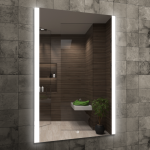 Lustro wiszące SYLENI zostało wykonane z niezawodnej tafli szkła o grubości 4 mm oraz profilu aluminiowego. Model posiada szlifowane krawędzie i jest piaskowany. Szczególną uwagę przykuwa białe podświetlenie LED o mocy 8W. Wysoka żywotność diod LED oraz dotykowy włącznik w dolnej części lustra gwarantują wygodne i bezawaryjne użytkowanie przez bardzo długi czas.
