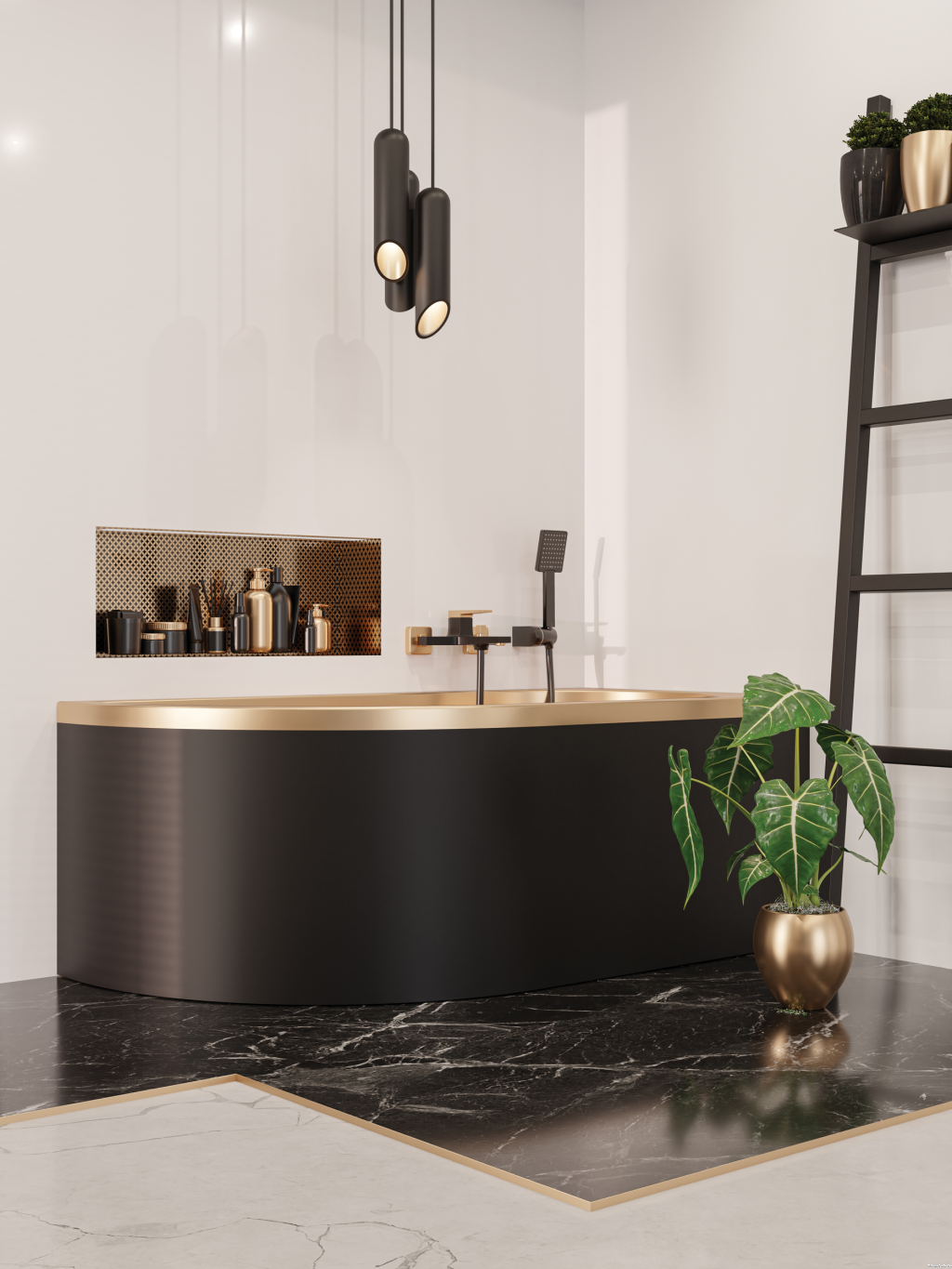 Bateria wannowa Midnight kolor Black Gold Rose to nowatorskie i przy tym eleganckie połączenie dwóch najmodniejszych we wnętrzarstwie kolorów. Matowa czerń rozjaśniona różowym złotem tworzy niekonwencjonalną biżuterię dla łazienki nadając jej zmysłowy charakter.