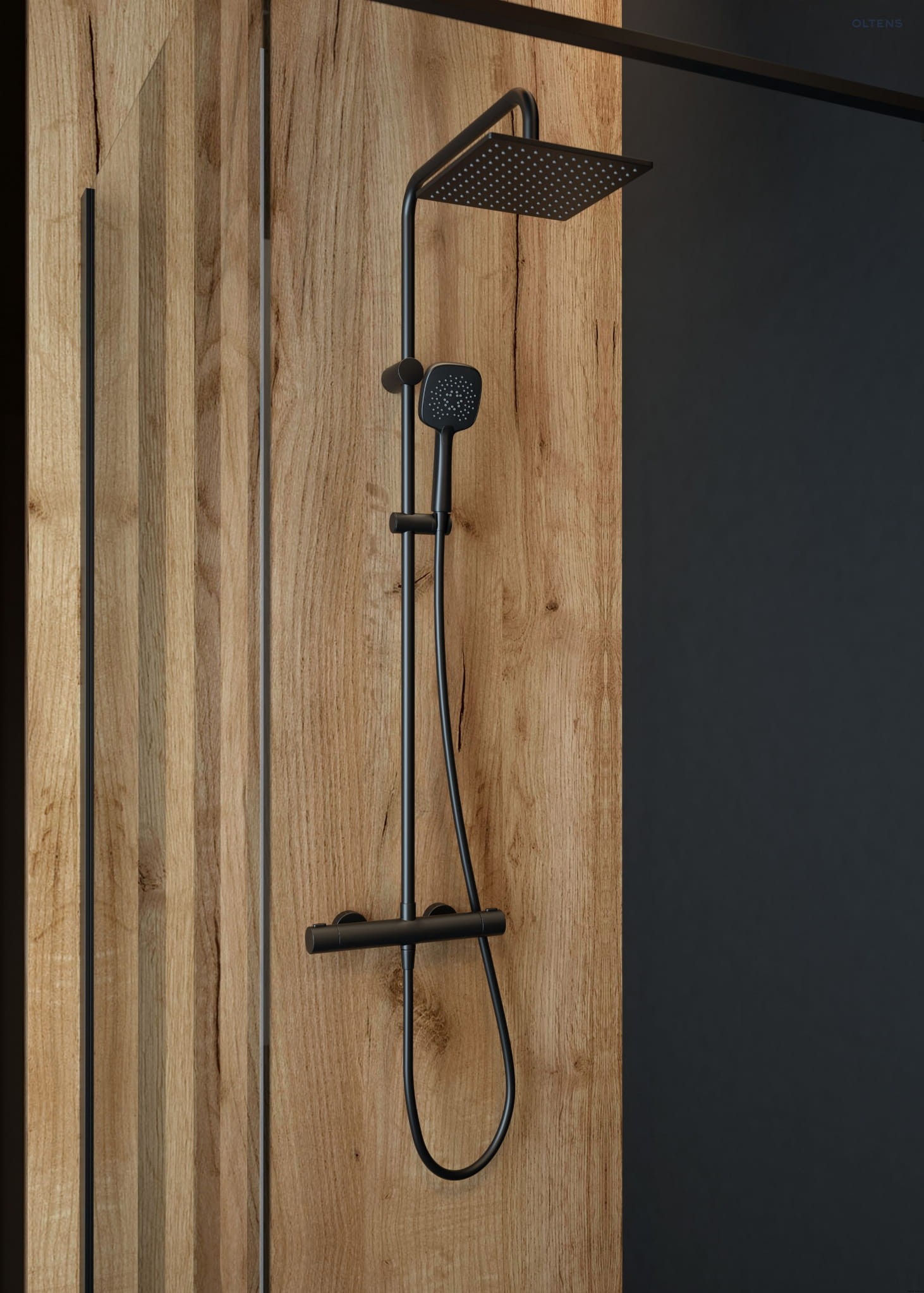 Oltens Atran (S) zestaw prysznicowy termostatyczny z deszczownicą czarny mat 36501300