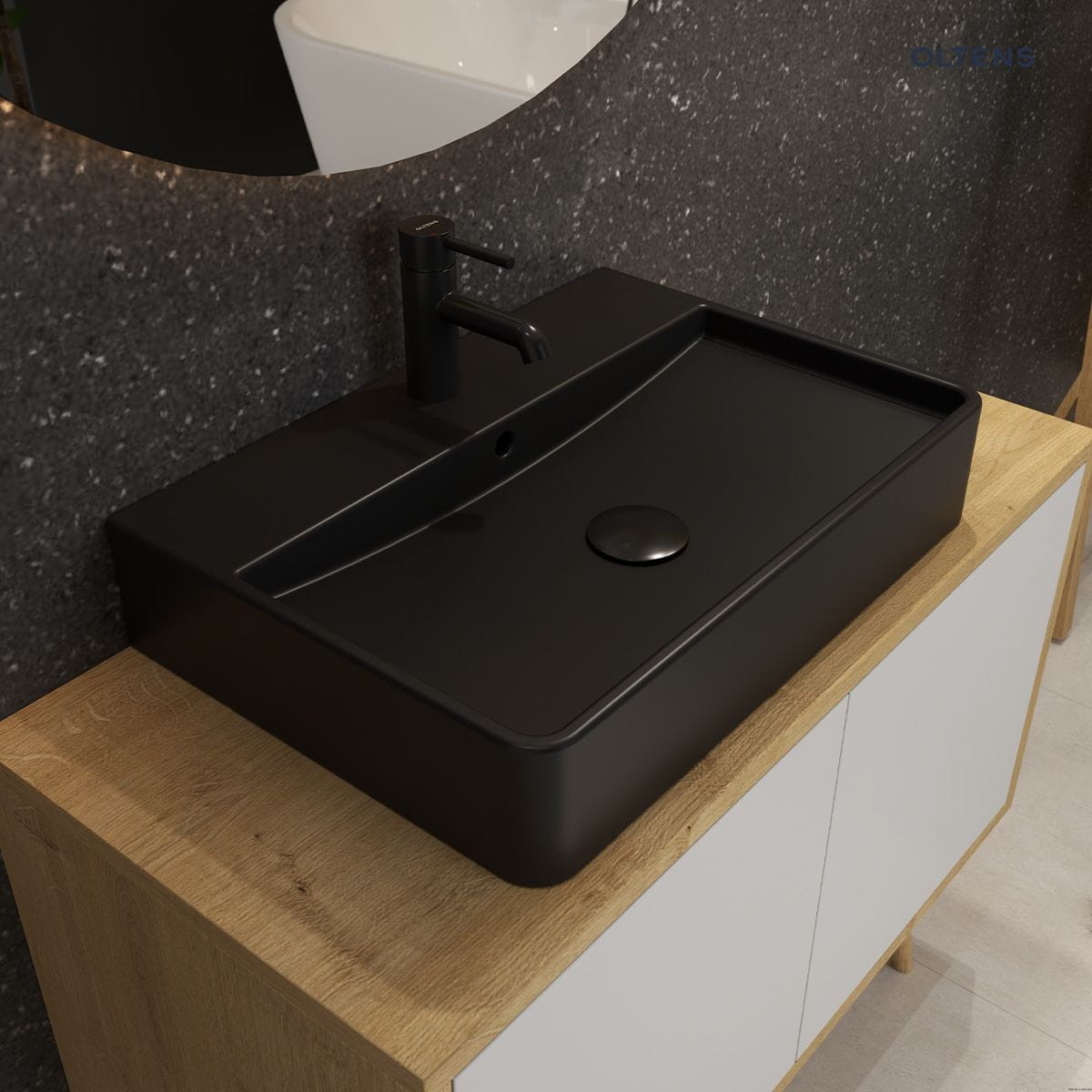 Oltens Duve umywalka 59x43,5 cm nablatowa prostokątna czarny mat 41300300