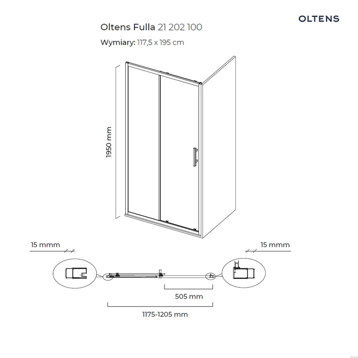 Oltens Fulla drzwi prysznicowe 120 cm wnękowe 21202100