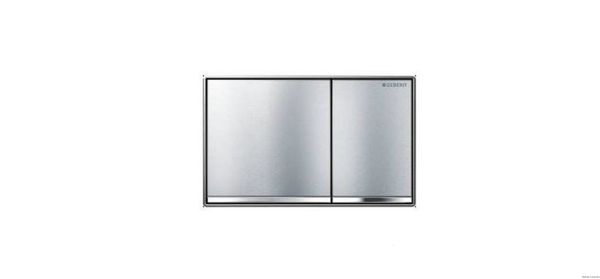 Przycisk o powierzchni chromowanej szczotkowanej z powłoką easy-to-clean spłuczkach podtynkowych Geberit Omega, uruchamiania od góry lub od przodu, zlicowana z powierzchnią ściany, popychacze izolowane akustycznie, szybki montaż bez użycia narzędzi.