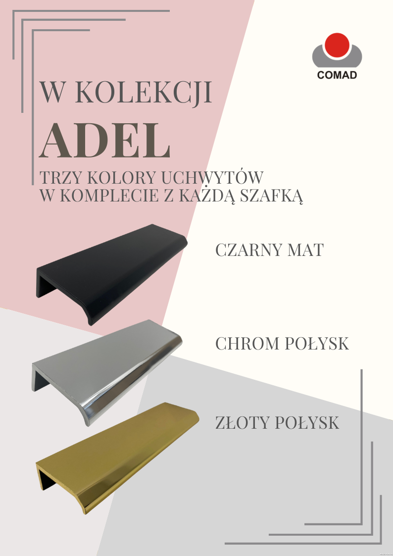 Nowa kolekcja ADEL w dwóch kolorach - Czarnym i Dębowym - to klasyczne proporcje brył połączone z wyjątkowymi frezowanymi pionowo frontami. Dzięki temu zestawieniu meble z tej kolekcji są uniwersalne i idealnie sprawdzają się zarówno w nowoczesnych, jak i klasycznych aranżacjach, a ich wysoka funkcjonalność zapewni komfort nawet najbardziej wymagającym użytkownikom. Kolekcja składa się z wiszących szafek pod umywalkowych w rozmiarach 60cm i 80cm, słupka wysokiego oraz blatów w rozmiarach 60cm, 80cm, i 120cm, co daje nam możliwość tworzenia zarówno mniejszych jak i większych zestawów. Zaletą tej kolekcji jest również możliwość wyboru uchwytów, ponieważ w zestawie do każdej szafki są trzy opcje kolorystyczne: złoty połysk, chrom połysk oraz czarny mat. Dzięki temu możemy dopasować kolor uchwytów do armatury, luster w różnych ramach lub w przyszłości odświeżyć wygląd mebli. Serdecznie zapraszamy do zapoznania się z ofertą kolekcji ADEL.