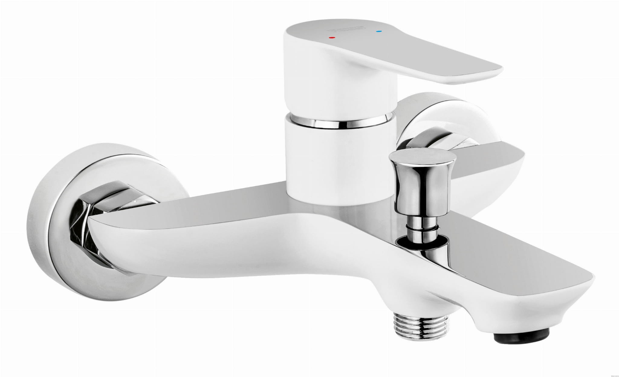 ADORE bateria wannowa, bez natrysku, chrom/biały. Bateria wannowa w oryginalnym dwukolorowym wykończeniu idealnie pasującym do nowoczesnych wnętrz. Uniwersalne przyłącze 1/2" pozwala na wybranie dowolnego zestawu natryskowego. Podsumowanie: Bateria wannowa ścienna