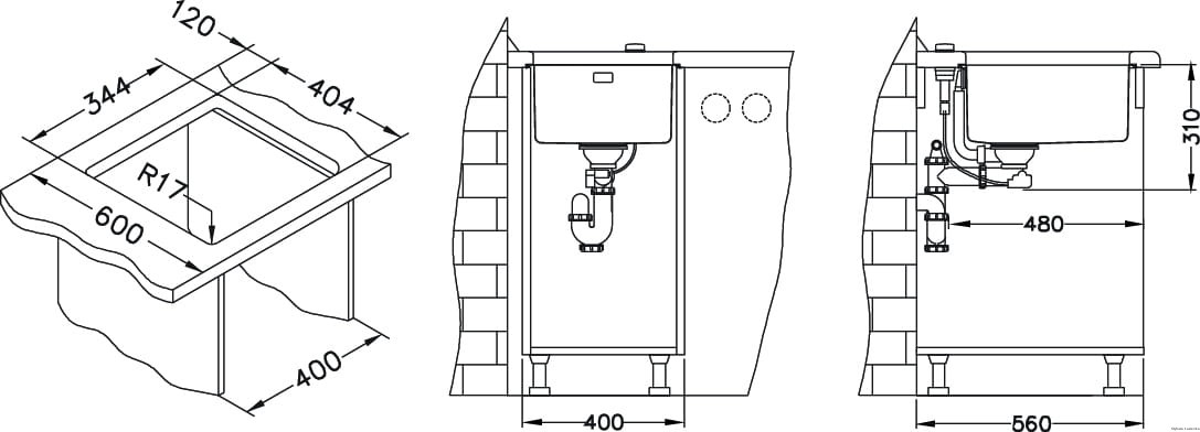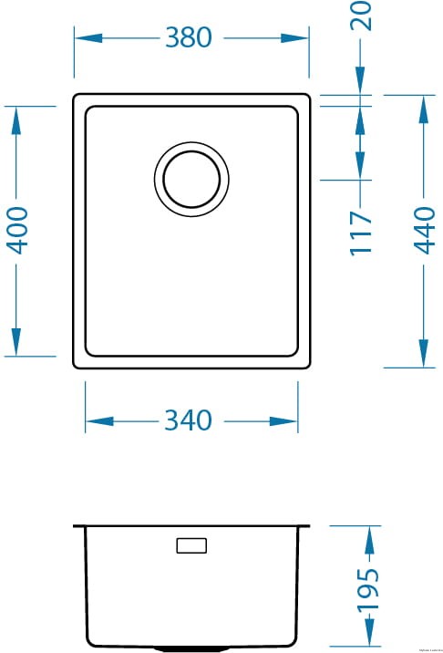 - Wymiary zlewozmywaka: 380 x 440 mm