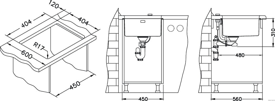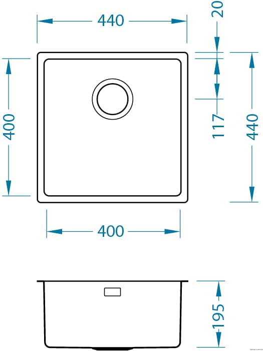 - Wymiary zlewozmywaka: 440 x 440 mm