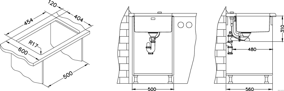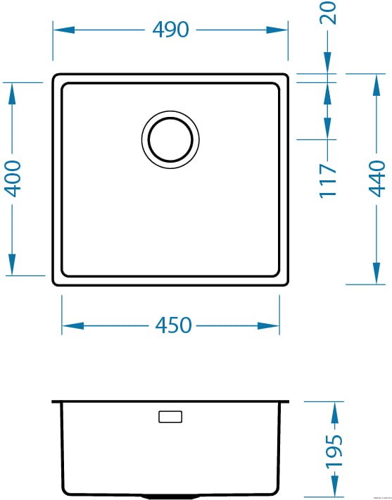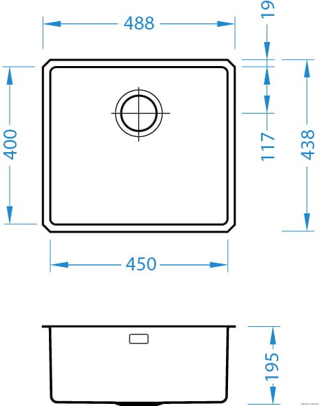 - Wymiary zlewozmywaka: 488 x 438 mm