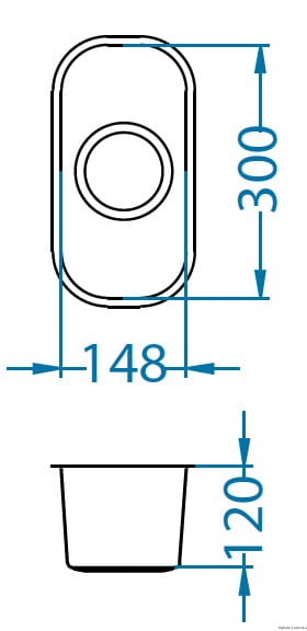 - Wymiary zlewozmywaka: 148 x 300 x 120 mm