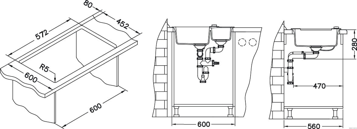 - Wymiary zlewozmywaka: 595x475x160 mm