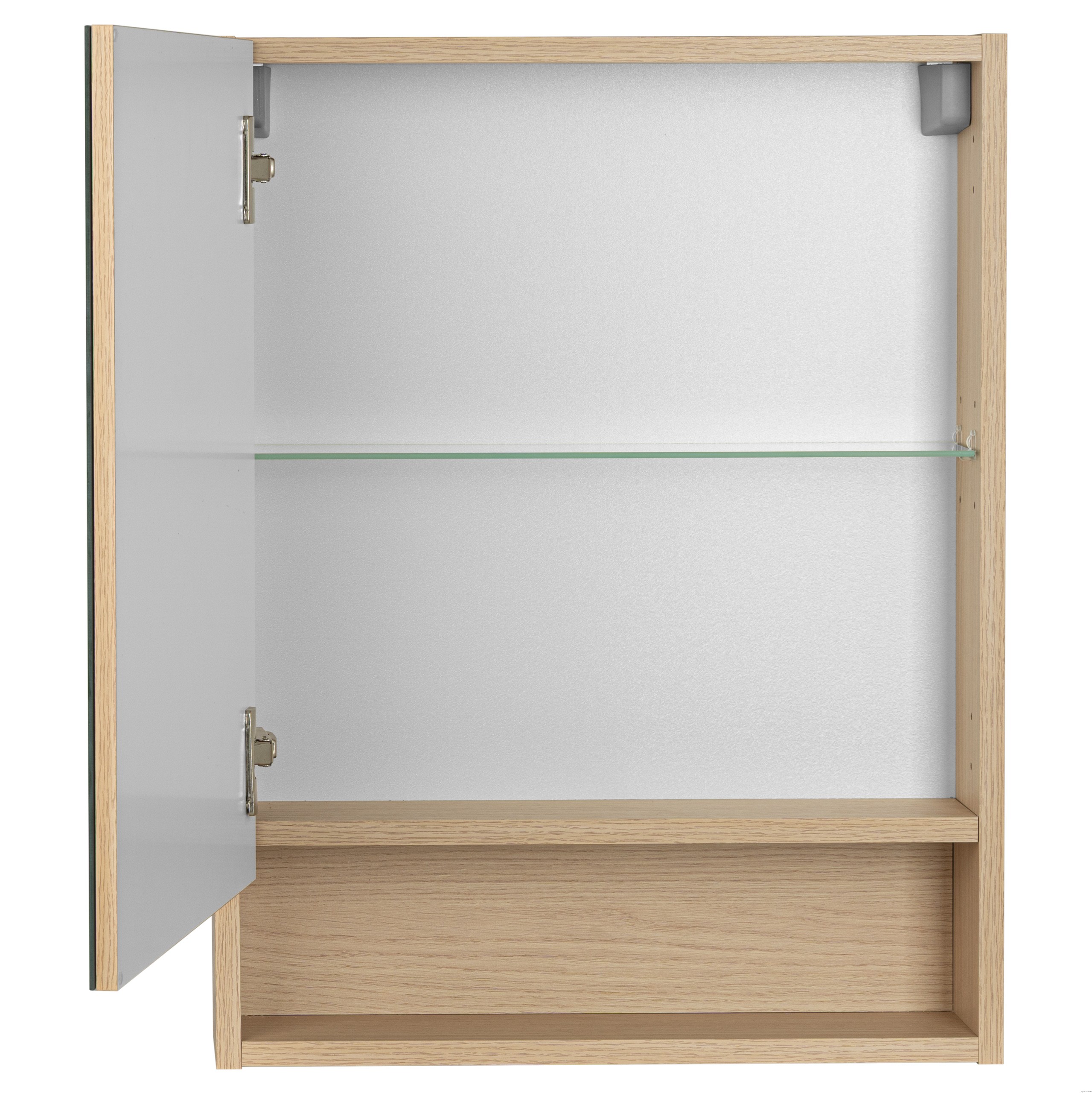 Szafka lustrzana o szerokości 50 cm posiada uniwersalne drzwi, które można montować do otwierania jako prawe lub lewe. Montaż do ściany odbywa się za pomocą regulowanych zawieszek montażowych pozwalających na łatwe poziomowanie. Szafka może być stosowana jako element uzupełniający lub jako samodzielny produkt według potrzeb użytkownika. Wewnątrz znajdują się półki z regulacją wysokości.