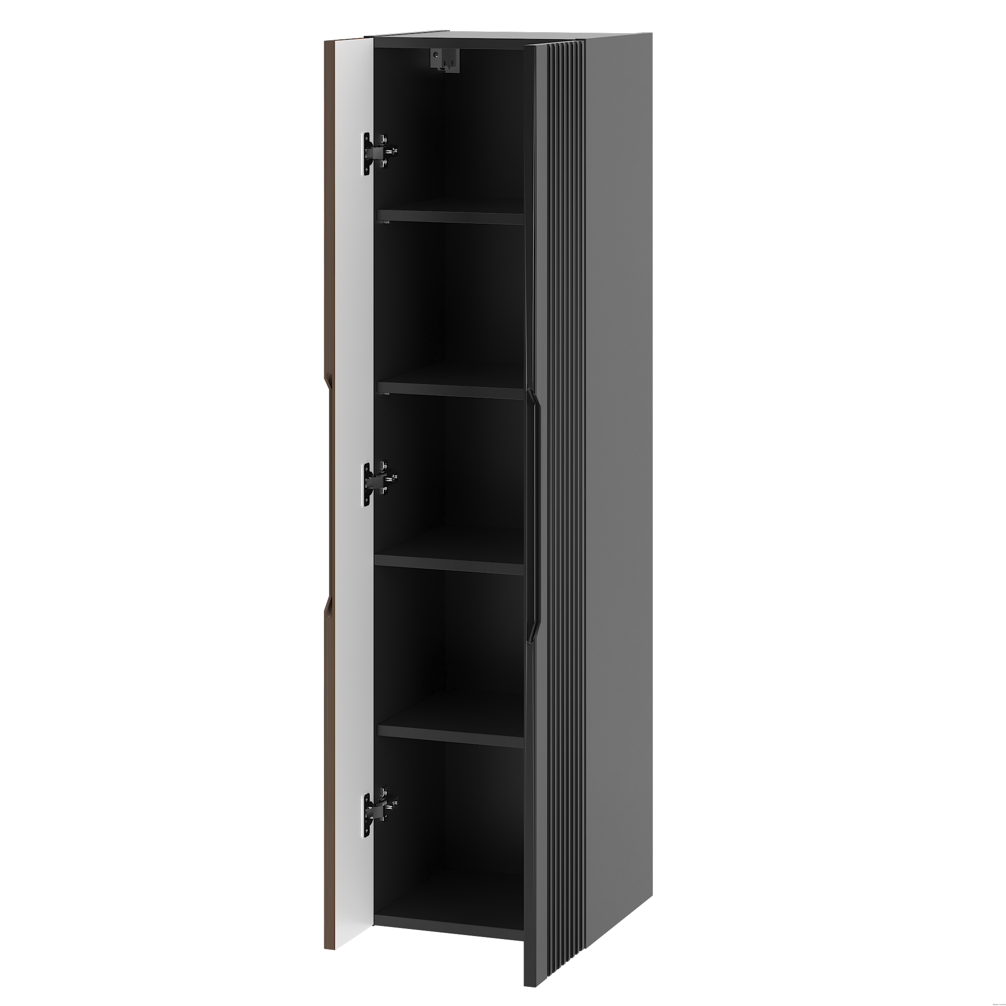 Słupek łazienkowy AVELLA-03 w wykończeniu czarny mat/orzech to stylowy i praktyczny mebel, który nadaje wnętrzu elegancki charakter. Połączenie nowoczesnej czerni z ciepłym odcieniem drewna sprawia, że idealnie komponuje się zarówno z aranżacjami minimalistycznymi, jak i bardziej klasycznymi. To rozwiązanie, które łączy estetykę z funkcjonalnością .