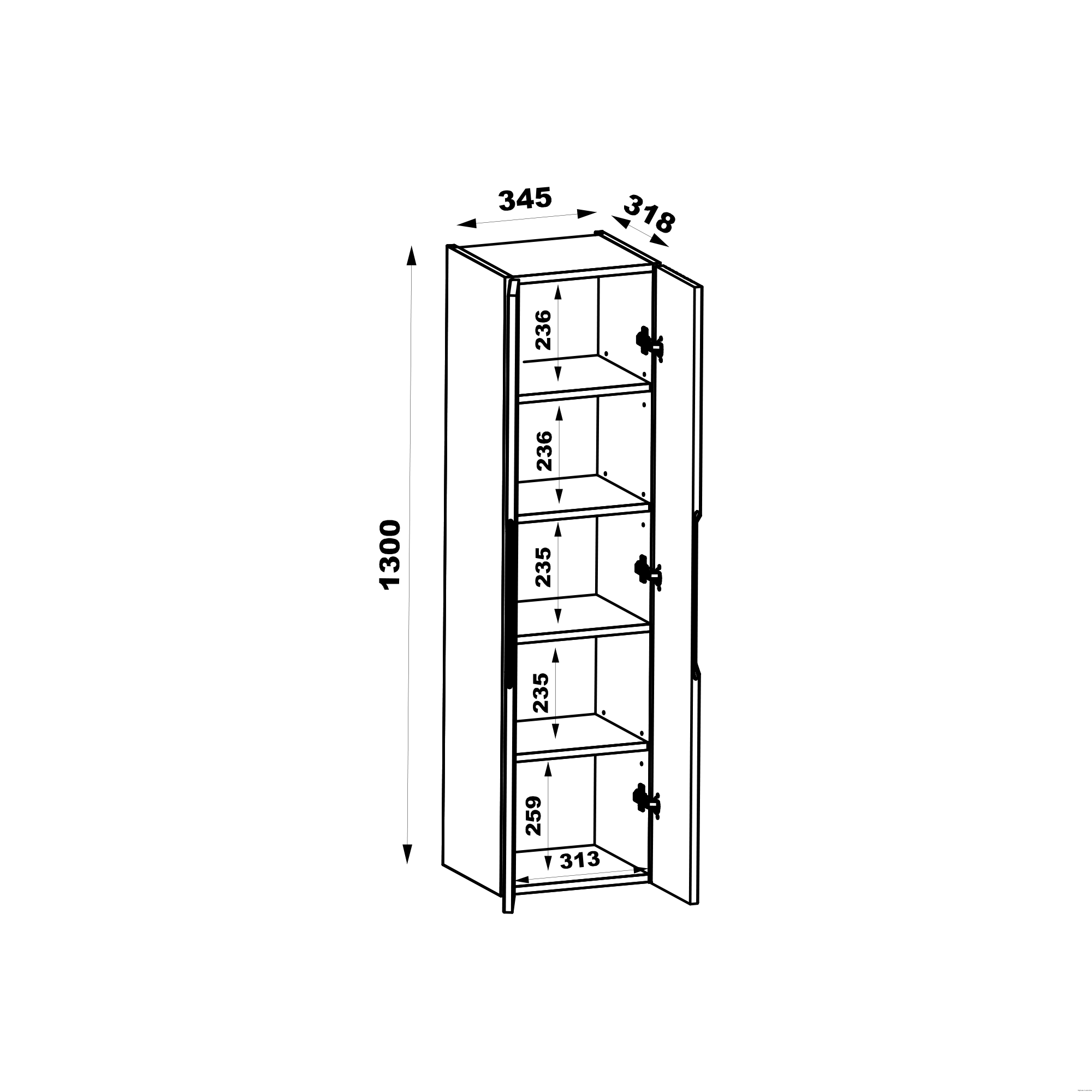 - Wymiary: 345 mm (szer.) x 1300 mm (wys.) x 318 mm (gł.)