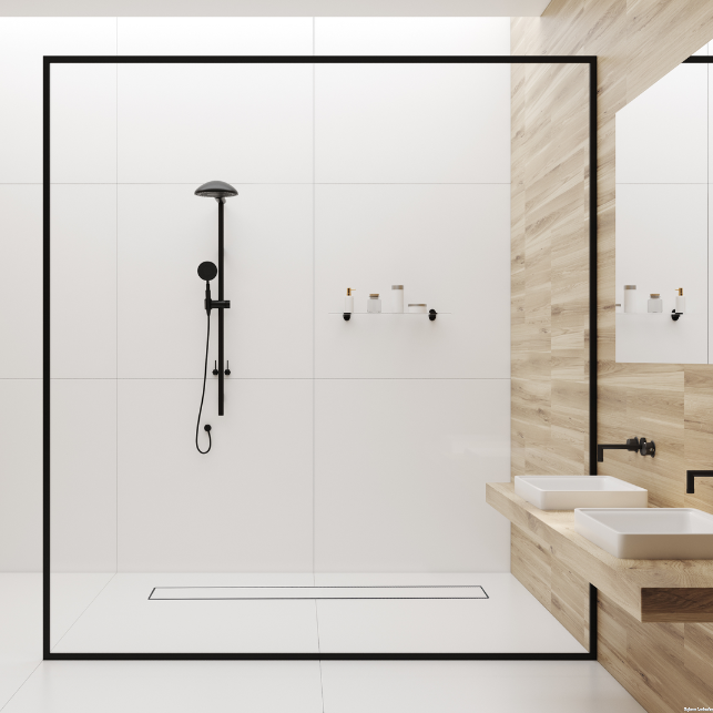 Dwustronny odpływ liniowy DUPLEX przeznaczony jest do zabudowy przy użyciu płytek ceramicznych lub marmuru. Doskonale komponuje się z podłogą w kabinie prysznicowej, tworząc harmonijną całość. Poprzez odwrócenie panelu o 180 stopni uzyskuje się dekoracyjną powierzchnię o strukturze szczotkowanej stali nierdzewnej. Dzięki tej funkcji w szybki i prosty sposób można zmienić wygląd kabiny prysznicowej.Wszystkie niezbędne elementy do montażu w zestawie