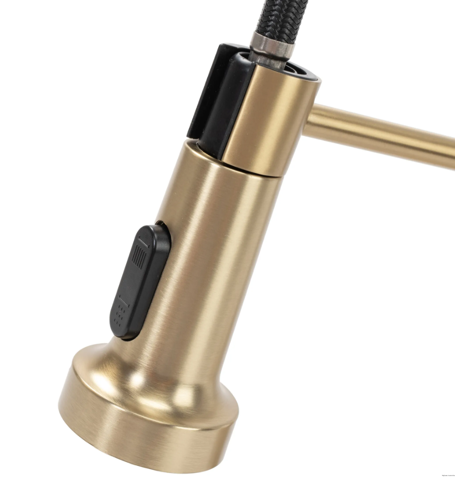 Podstawa każdej funkcjonalnej kuchni to odpowiednia bateria kuchenna. Metalowy korpus, z którego wykonany jest ten produkt, to gwarancja trwałości i stabilności baterii. Pokrycie wytrzymałą powłoką nadaje baterii odporności na zanieczyszczenia, a złoty kolor niezwykłego wyglądu, który idealnie wpasuje się do wystroju Twojej kuchni.Długoletnią niezawodność gwarantuje użycie ceramicznej głowicy. Wyginana wylewka pozwala na skierowanie strumienia w dowolne miejsce. Końcówka wylewki posiada przełącznik, pozwalający na wybór między strumieniem rozproszonym a skupionym.