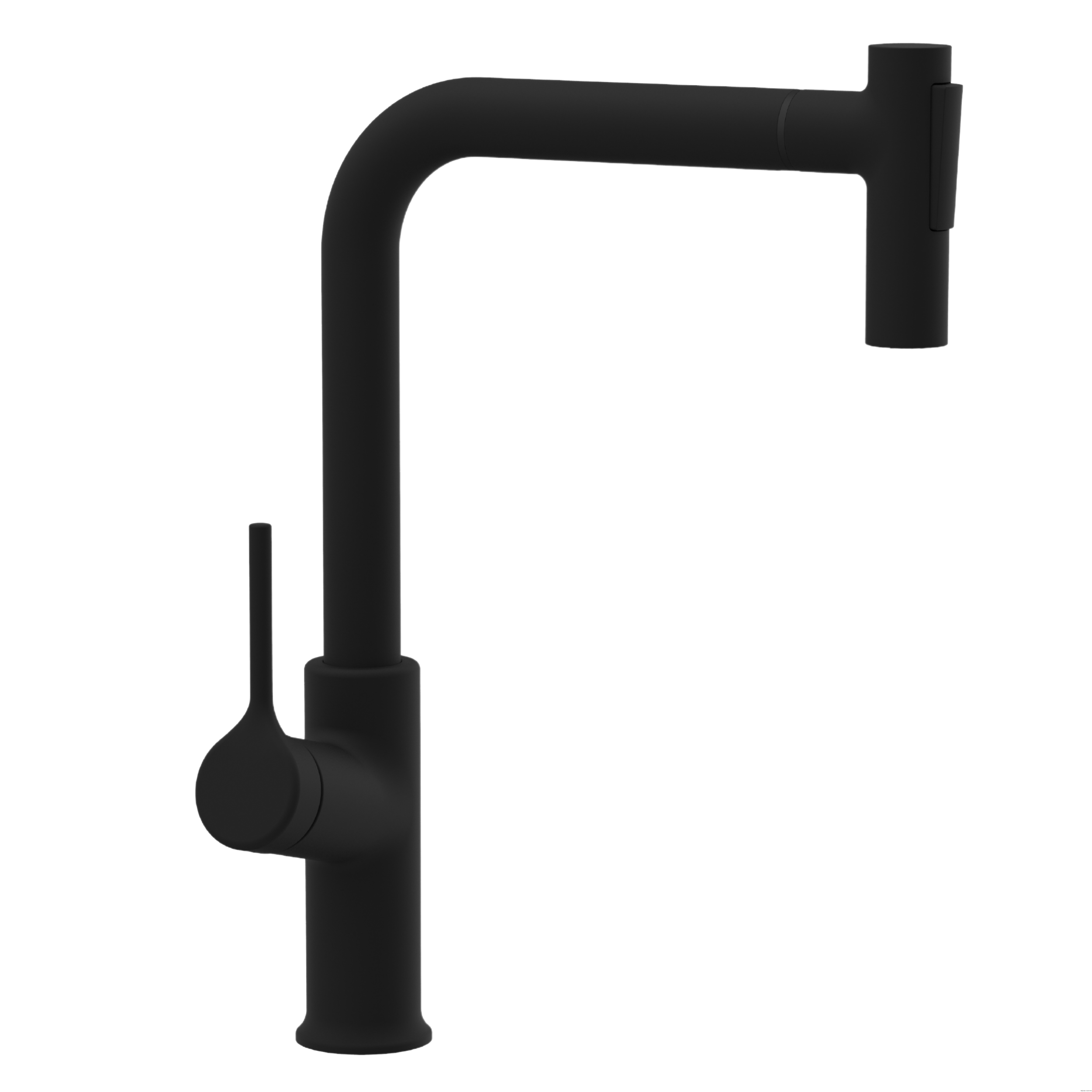Jednouchwytowa, stojąca z obrotową, wyciąganą, dwufunkcyjną wylewką w kształcie L (strumień normalny, spray). Mieszacz ceramiczny 35 mm. Perlator oszczędzający wodę, z tworzywa sztucznego.. W zestawie:. System szybkiego montażu. Kluczyk do mnotażu i demontażu perlatora. Wężyki przyłączeniowe 3/8”, 40 cm x 2 szt.