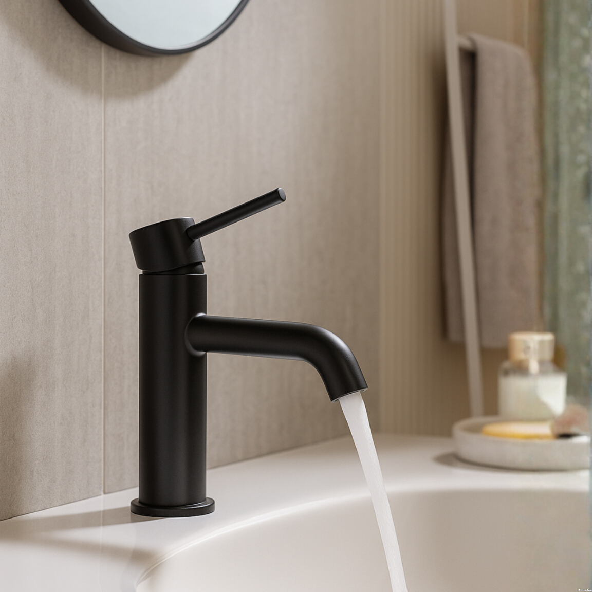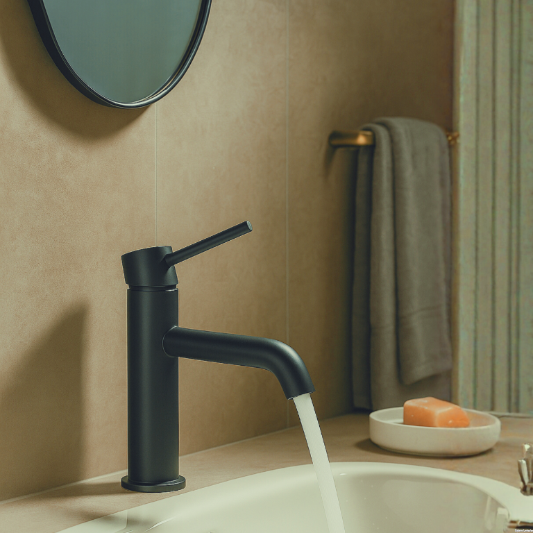Jednouchwytowa bateria nablatowa w czarnym wykończeniu, łącząca prostą formę z funkcjonalnością. Korpus ze stali nierdzewnej AISI 304, ceramiczna głowica oraz standardowy perlator zapewniają trwałość i komfort użytkowania. Montaż na blacie lub umywalce.