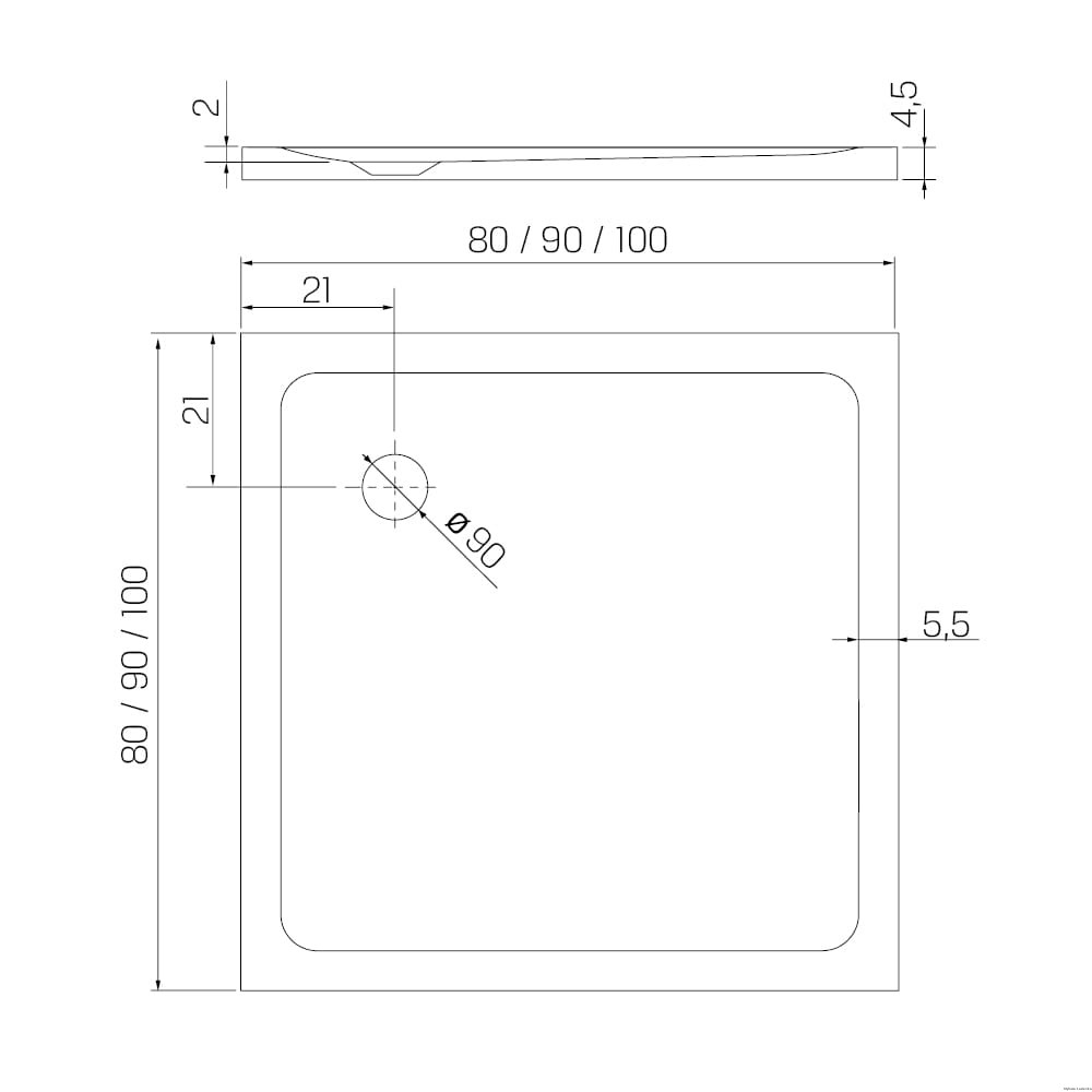 Brodzik Mild Kwadratowy Biały Akrylowy 80x80x4,5, Producent: New Trendy, Numer Kat: B-0625
