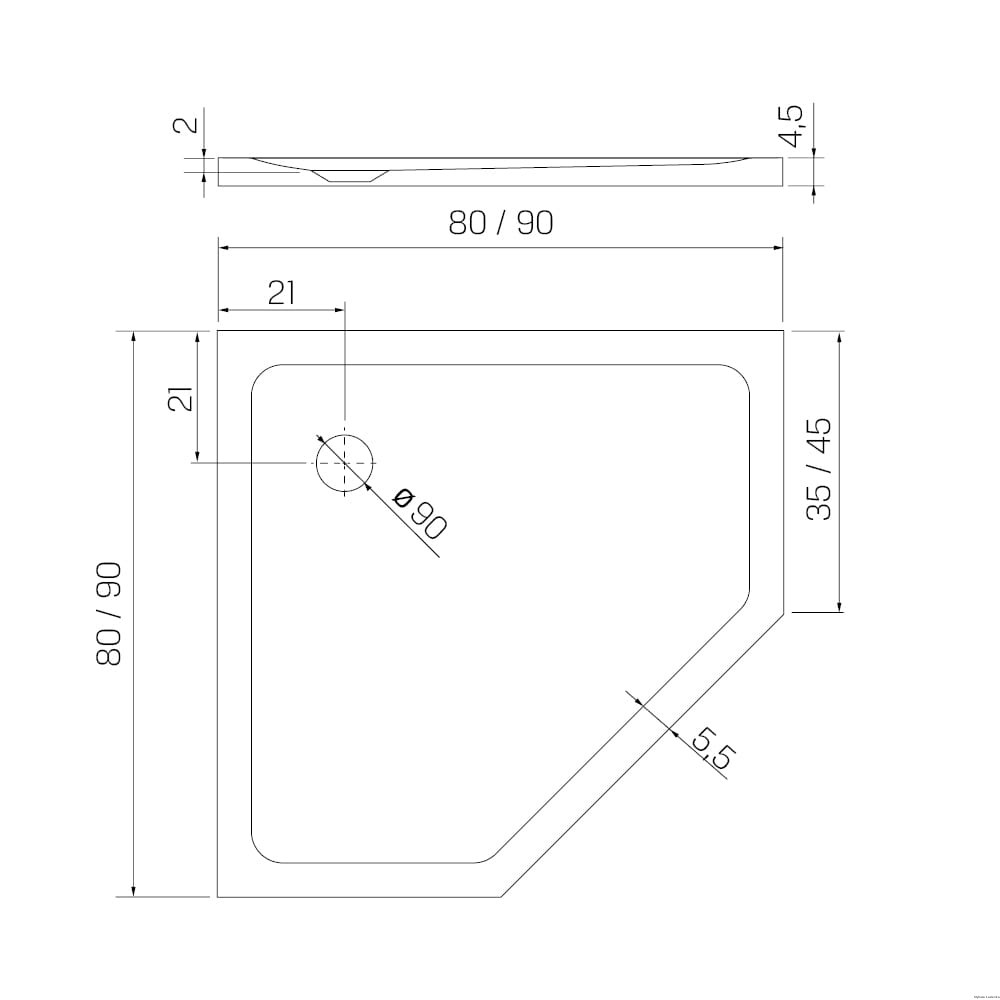 Brodzik Mild Pięciokątny Biały Akrylowy 90x90x4,5, Producent: New Trendy, Numer Kat: B-0624