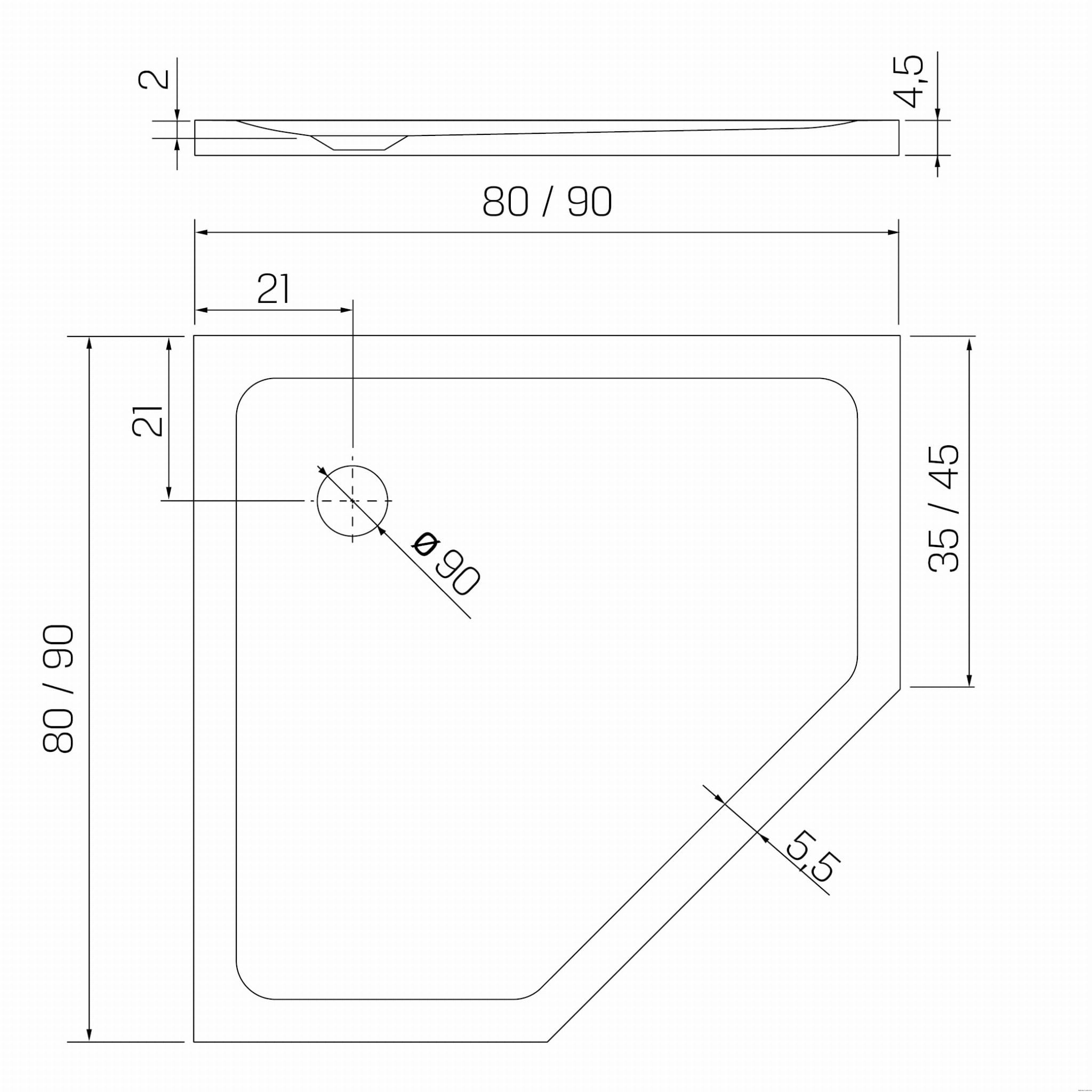 - umiejscowienie odpływu: w narożniku