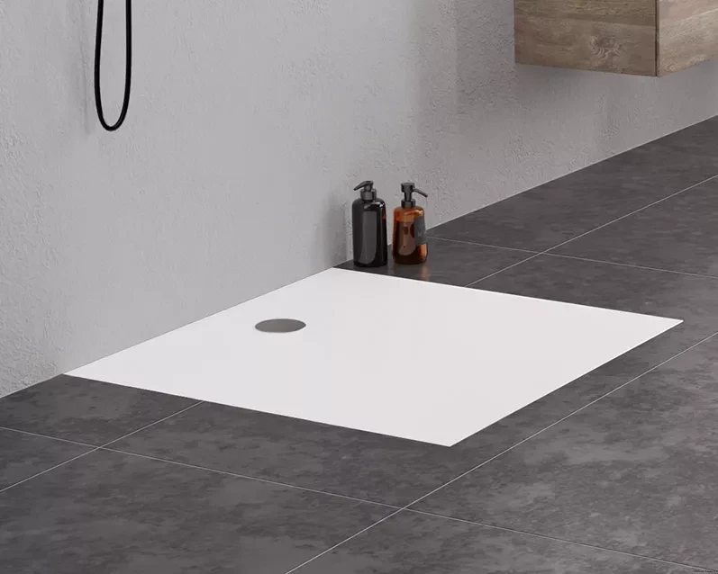 Ultra płaskie, bezrantowe brodziki kolekcji Nex Shade. Można zlicować je z podłogą, a także dociąć do niestandardowych kształtów i rozmiarów. Produkty odporne na ścieranie, odbarwienia, uderzenia, zmiany temperatur i promieniowanie UV. Do brodzików Nex Shade polecamy zakup ultra płaskiego syfonu Thino. Modele tej kolekcji objęte są 5-letnim okresem gwarancji.