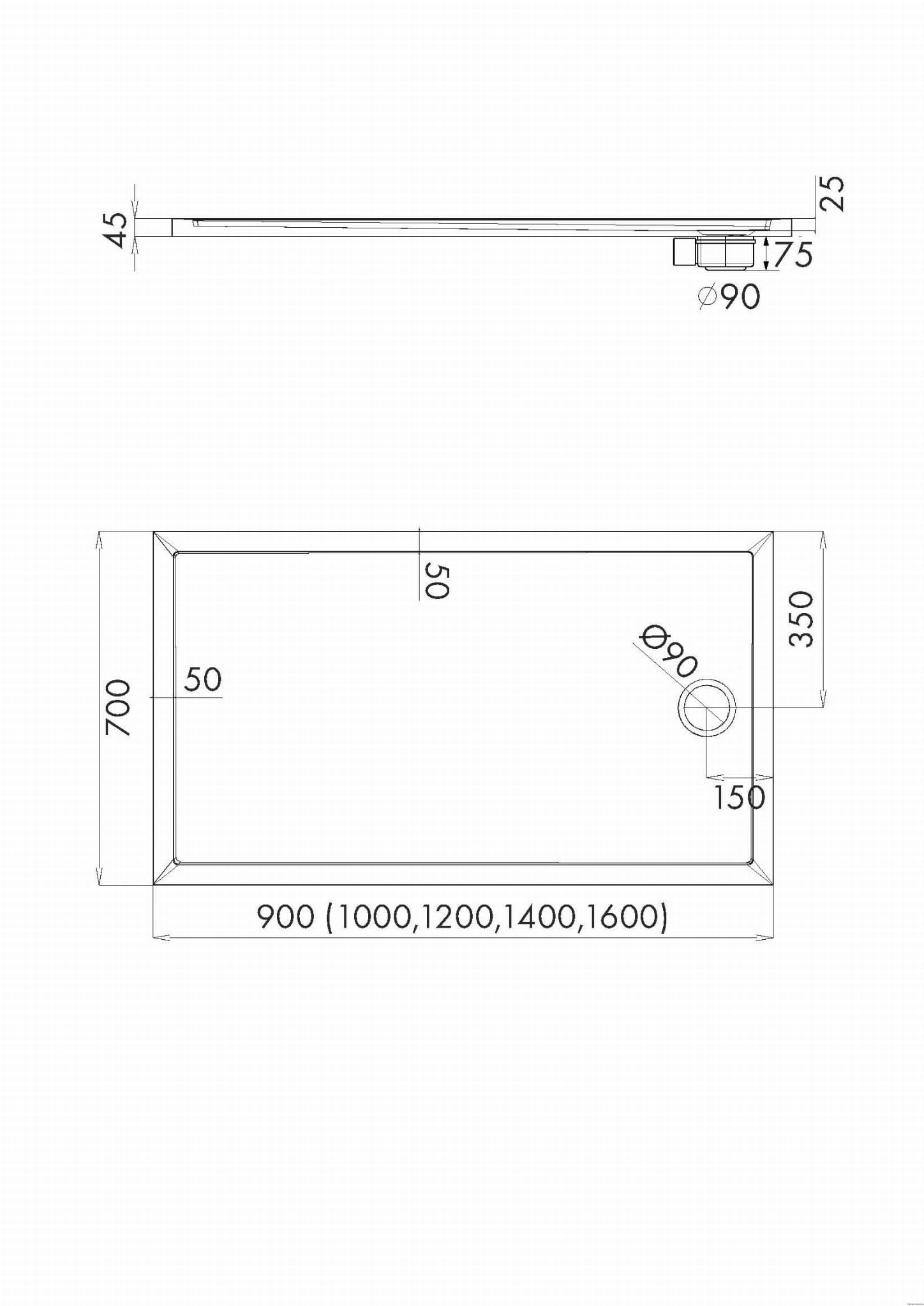 Brodzik akrylowy Sharper 70x140x4,5 cm, prostokątny z odpływem na krótszym boku, produkcji Schedline, nr kat.: 3S.S2P-70140
