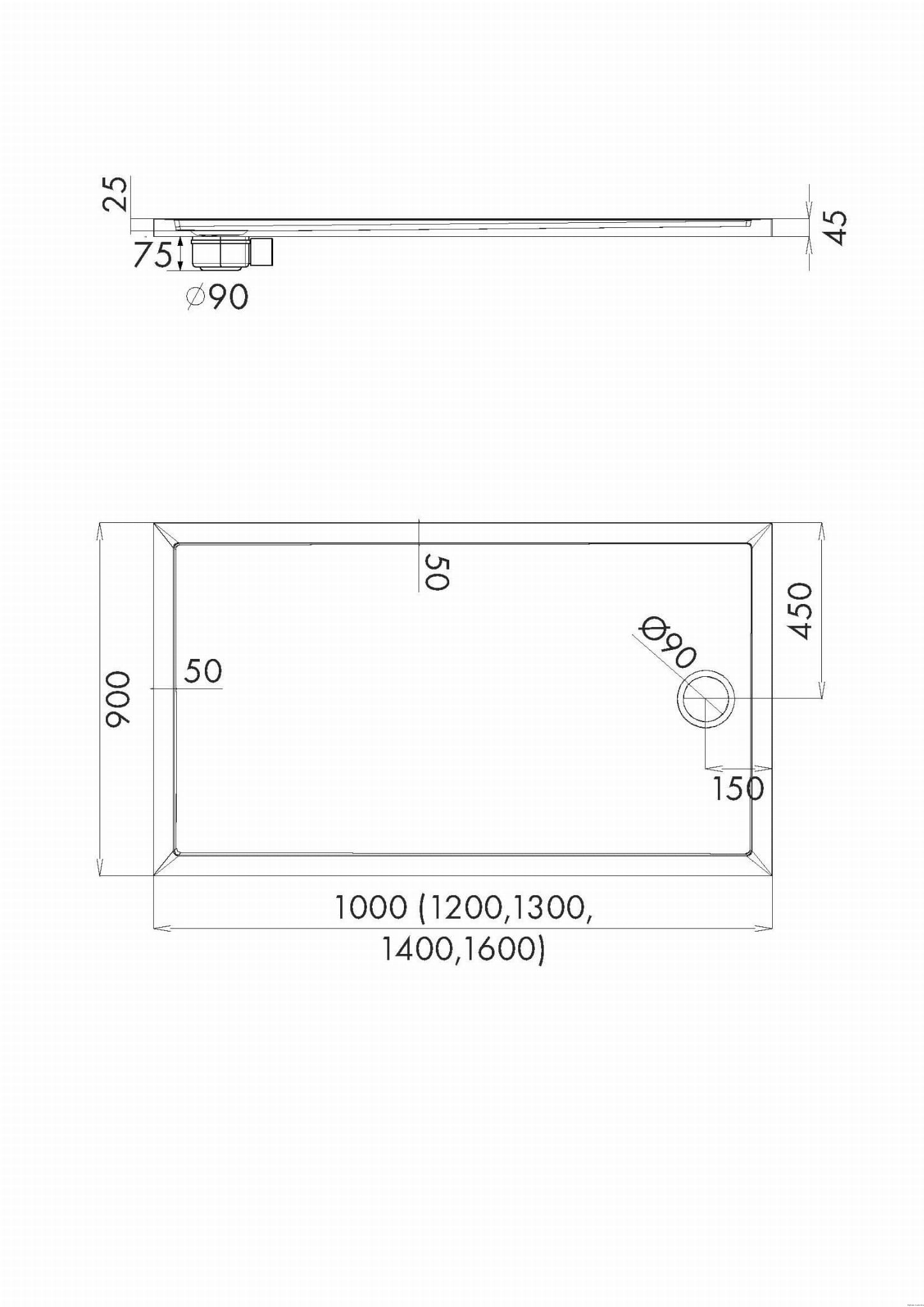 Brodzik akrylowy Sharper 90x120x4,5 cm, prostokątny z odpływem na krótszym boku, produkcji Schedline, nr kat.: 3S.S2P-90120
