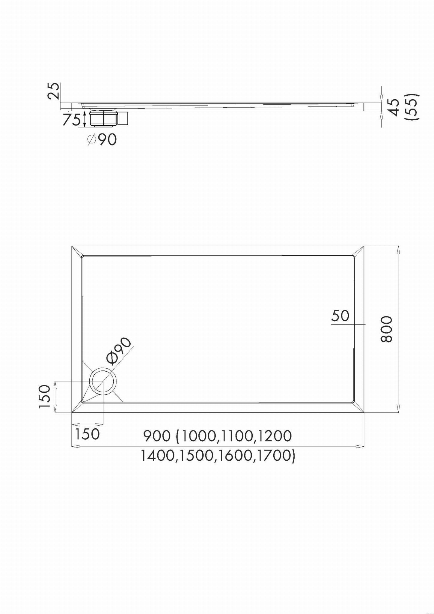 Kolorach: biały (gładki), cementowy (struktura kamienia) i czarny (struktura kamienia) sprawia, że brodzik idealnie wpisze się we wnętrza o każdej stylistyce.