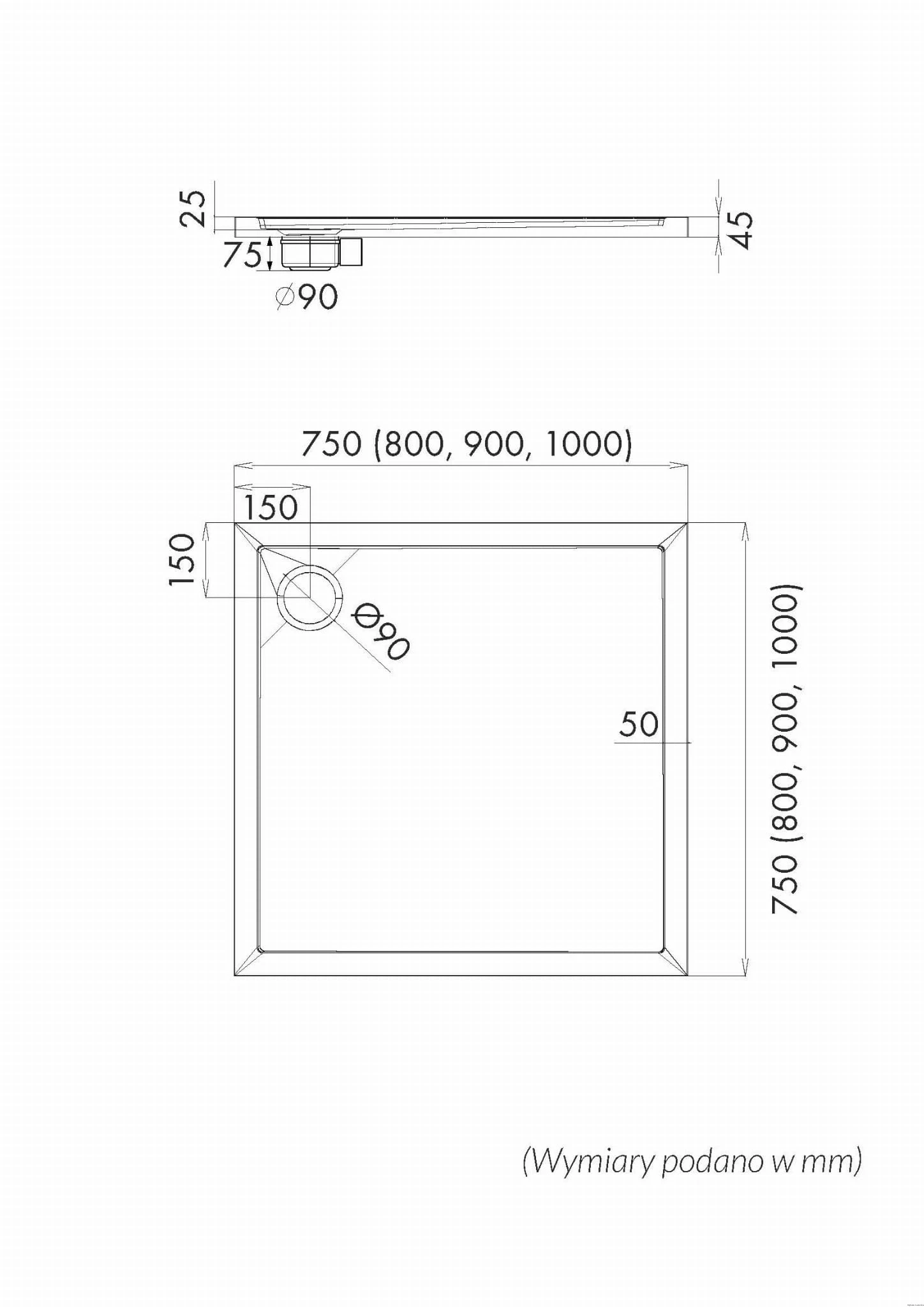 Średnica odpływu: 90mm