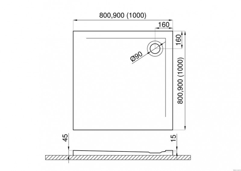 Brodzik akrylowy posadzkowy kwadratowy GEOS 80x80x1,5 cm produkcji Polimat