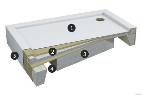 5. Wielowarstwowe wzmocnienia - Odportność na nacisk i zwiększona wytrzymałość także w newralgicznych rantach brodzika. Bok brodzika przychodowany do bezpośredniego oklejania płytkami lub zintegorowany panel boczny.
