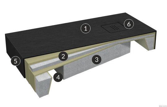 5. Wielowarstwowe wzmocnienia - Odportność na nacisk i zwiększona wytrzymałość także w newralgicznych rantach brodzika. Bok brodzika przychodowany do bezpośredniego oklejania płytkami lub zintegorowany panel boczny.
