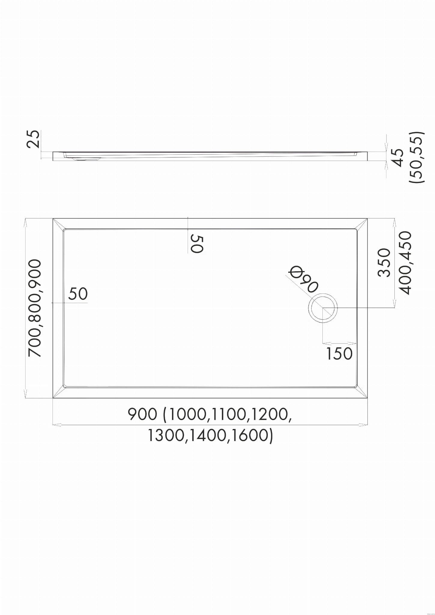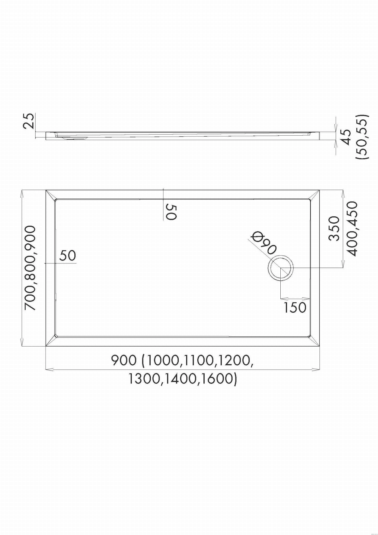 Brodzik kompozytowy Stabilsound Plus® Estima 70x100x4,5 cm, prostokątny z odpływem na krótszym boku, produkcji Schedline, nr kat.: 3SP.E1P-70100