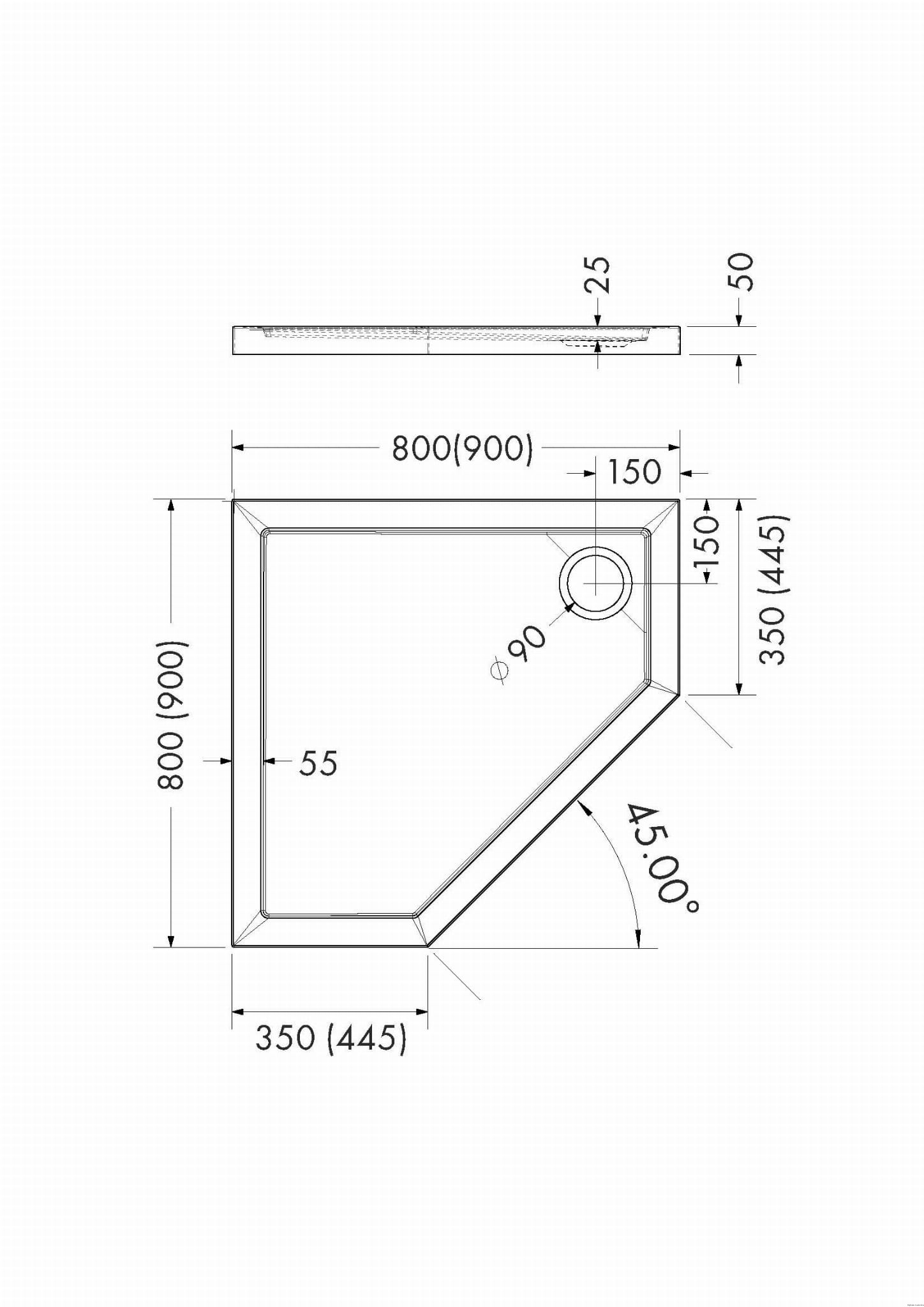 Brodzik kompozytowy Stabilsound Plus® Estima 80x80x5 cm, pięciokątny, produkcji Schedline, nr kat.: 3SP.E1PK-8080