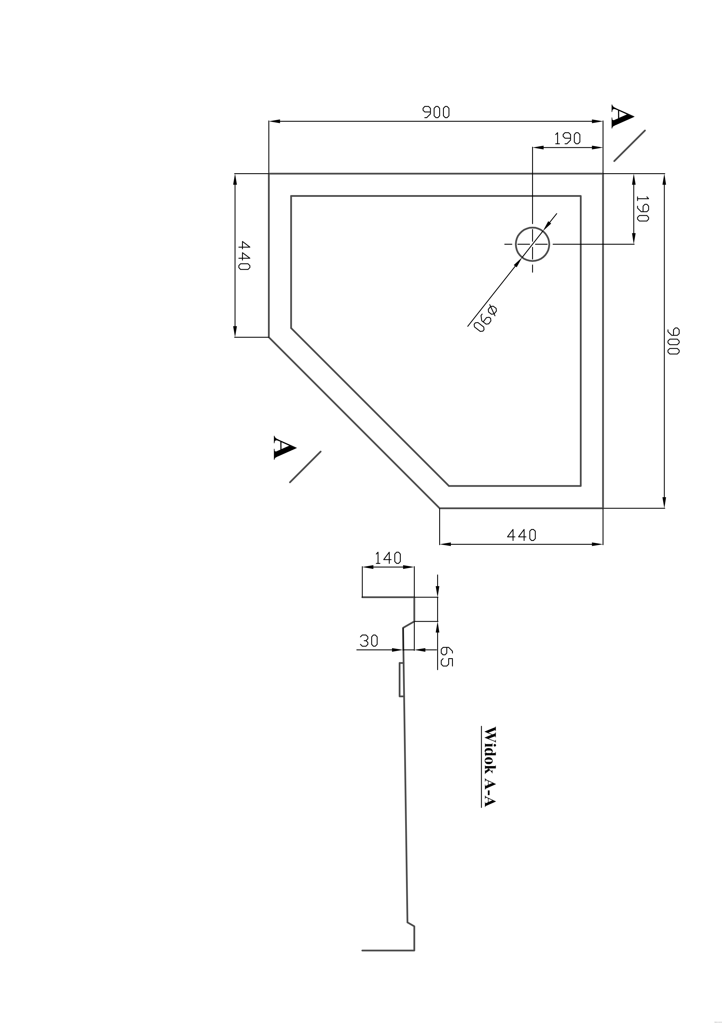 Brodzik pięciokątny 90x90x14 cm BKB022PK Metal-Hurt